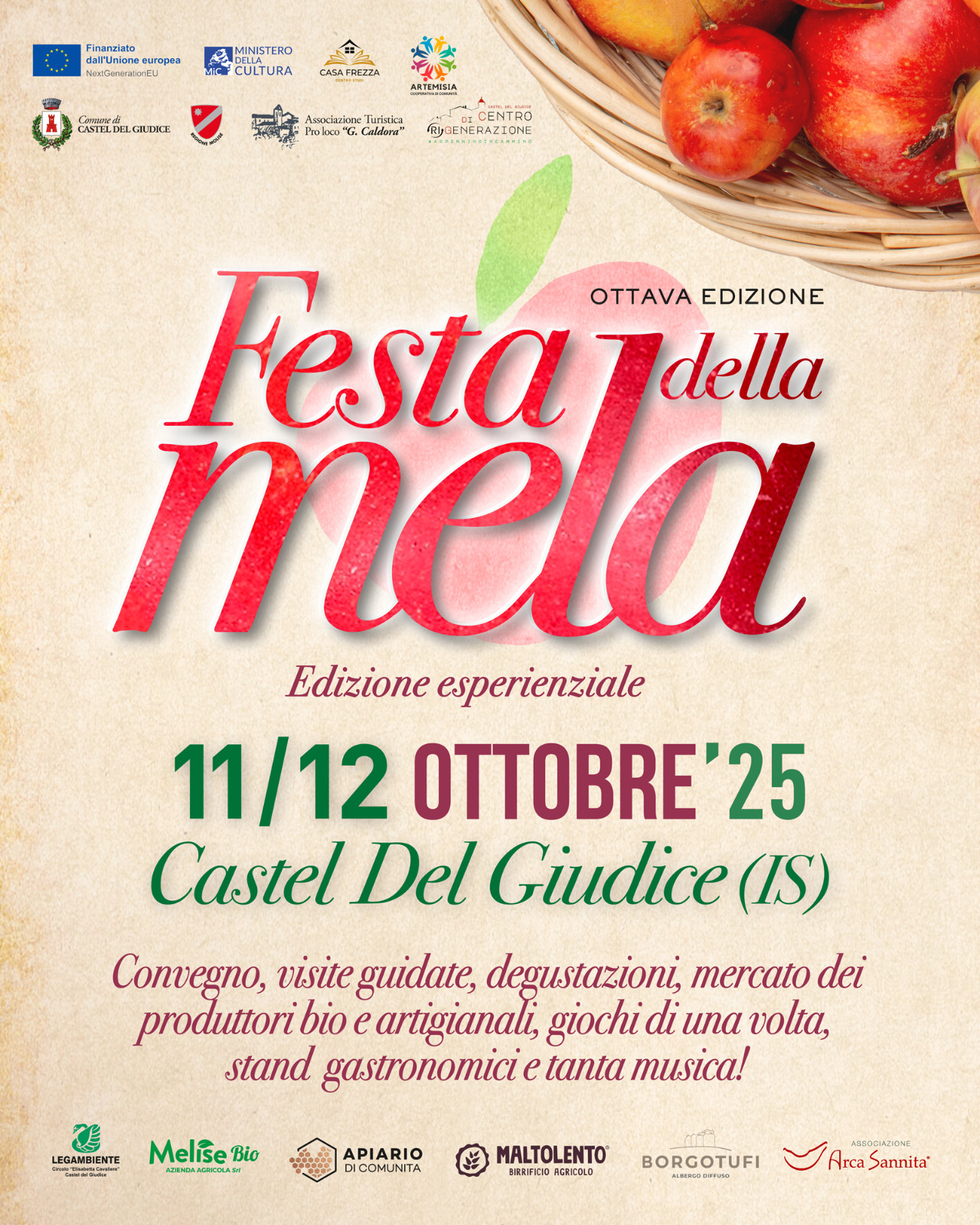 La Festa della Mela è organizzata dal Comune e dalla Pro Loco di Castel del Giudice. La manifestazione rientra nella ricca programmazione culturale del progetto “Castel del Giudice Centro di (ri)Generazione dell’Appennino” con il quale il Comune di Castel del Giudice ha vinto il Bando Borghi del PNRR.